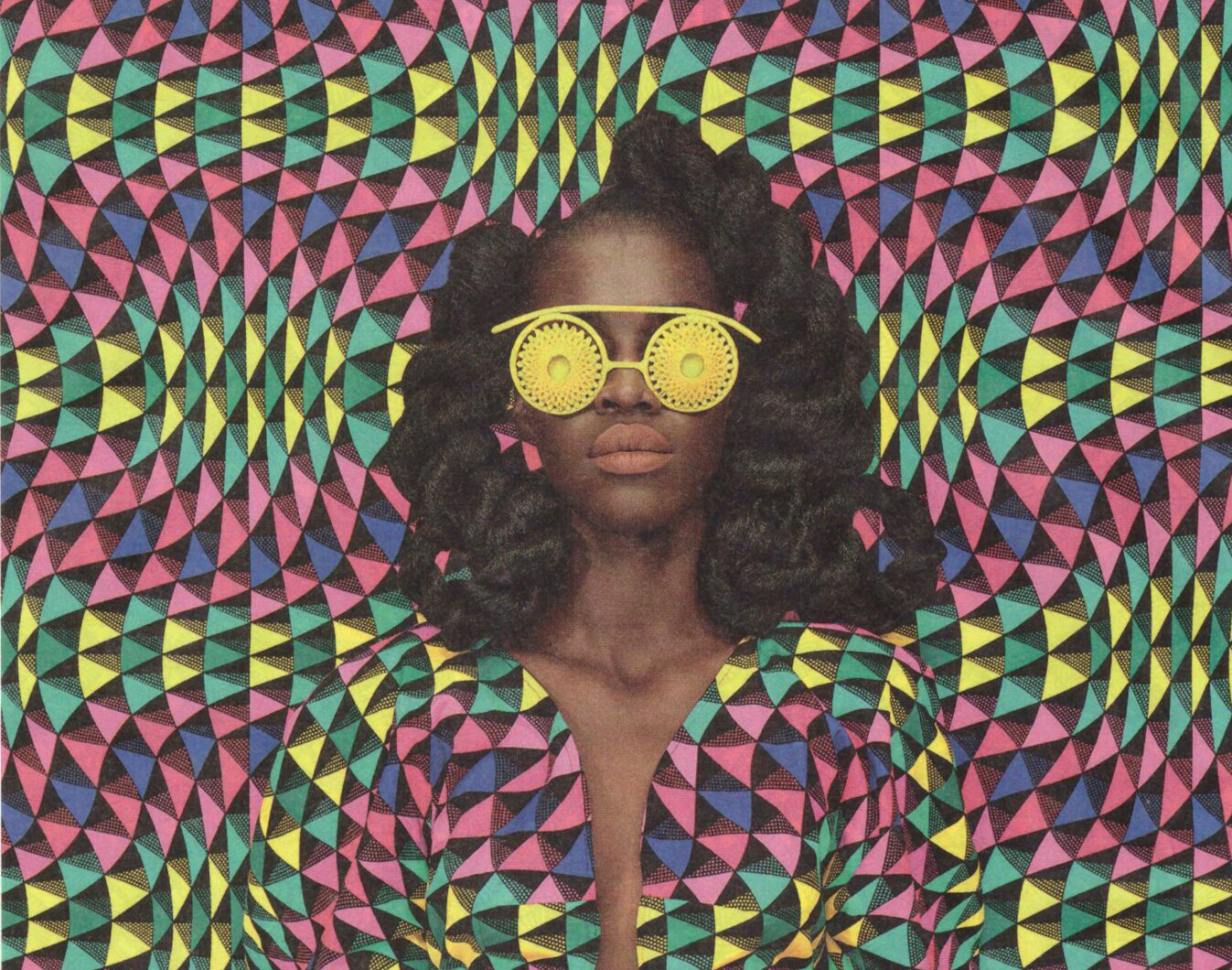 Nuove espressioni d’arte avanzano. la figura annega e si fonde al contesto in un esplosione di colori psichedelici quasi a ricordare la OP ART. (OPTICAL ART) tanto in voga negli anni ’60